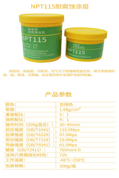 1、NPT-115耐磨蚀涂层包装规格:500g/套